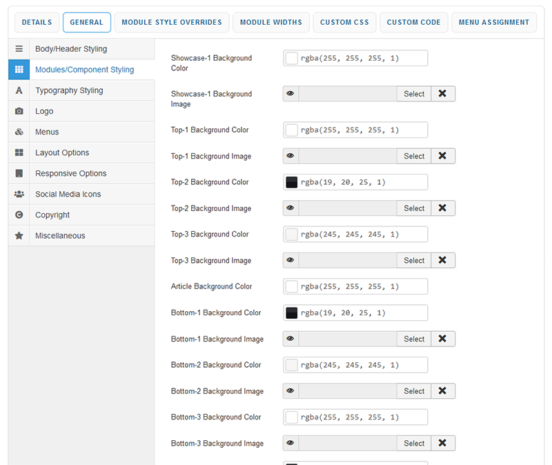 Your template parameters can be access directly from your Template Manager giving you access to a host of features including a selection of template styles, some colour choosers to help customise your template headers and links, a number of layout options and easy to use logo settings.